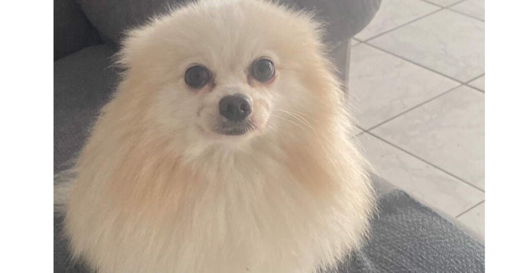 Características do animal: Spriss Alemão pelagem clara atende por Theo.