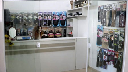 Além de perucas, também a loja conta com diversos acessórios como: queratina, removedor, alicate, agulha, lastex, fita dupla face para mega hair de fita lastex de silicone, pinça para mega hair, panelinha para derreter queratina,