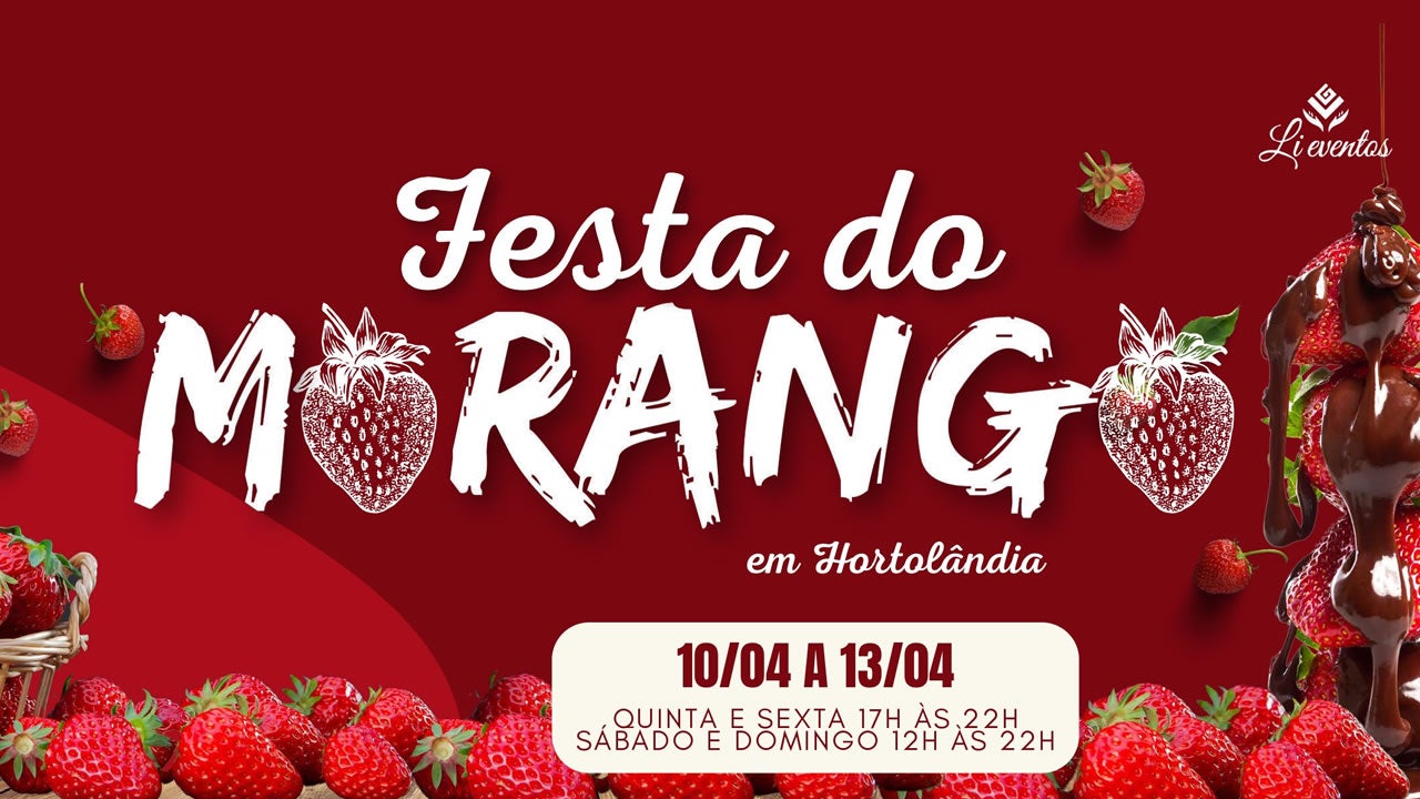 A Festa do Morango em Hortolândia acontecerá entre os dias 10 e 13 de abril, com entrada gratuita. O evento será realizado no estacionamento térreo do Shopping Hortolândia, com horários diferenciados: