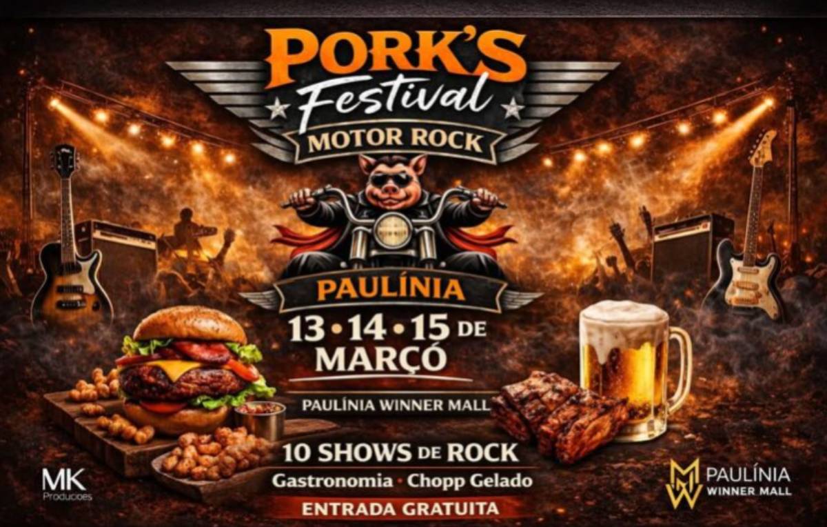 A cidade de Paulínia recebe pela primeira vez o Pork’s Festival Motor Rock, que acontece entre os dias 13 e 15 de março, no Winner Mall, com entrada gratuita para o público. Conhecido por atrair grande público nas cidades por onde passa, o festival promete uma programação intensa com 10 shows de rock ao longo dos três dias.