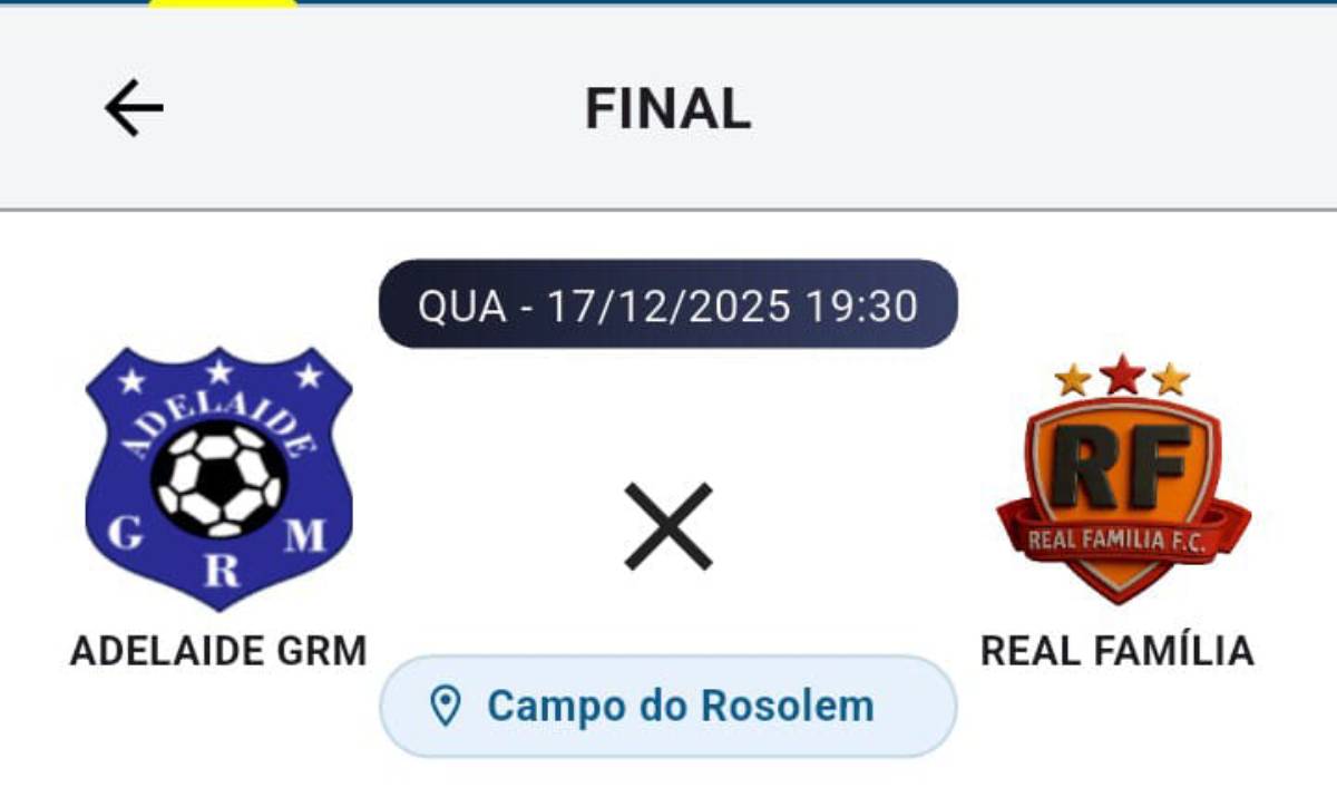 A final do Supermaster 45+ do futebol amador de Hortolândia 2025 acontece nesta quarta-feira (17/12), às 19h30, no Campo do Rosolém. Real Família e Adelaide se enfrentam pelo título da categoria. Lembrando que o Real Família garantiu a vaga na decisão após vencer o Santa Esmeralda por 4 a 0. Já o Adelaide, eliminou o Sumarezinho com uma vitória por 2 a 0.