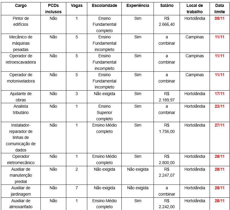 Confira todas as vagas de emprego anunciadas no PAT Hortolândia
