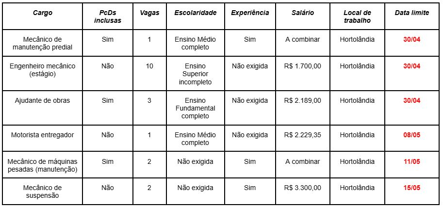 Observação: Dependendo do dia que estiver vendo está postagem a vaga poderá não estar mais disponível.