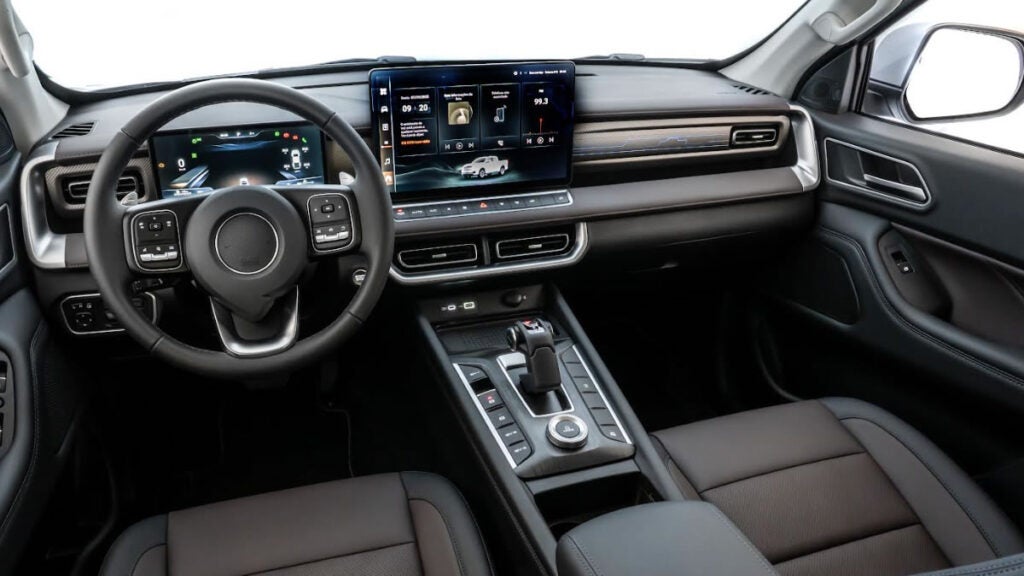 A transmissão automática de 9 marchas, desenvolvida pela própria GWM, suporta até 750 Nm de torque e garante capacidade de reboque de 3.100 kg (com freio). Já a tração 4×4 oferece os modos 2H, 4H e 4L, além do bloqueio de diferencial traseiro.