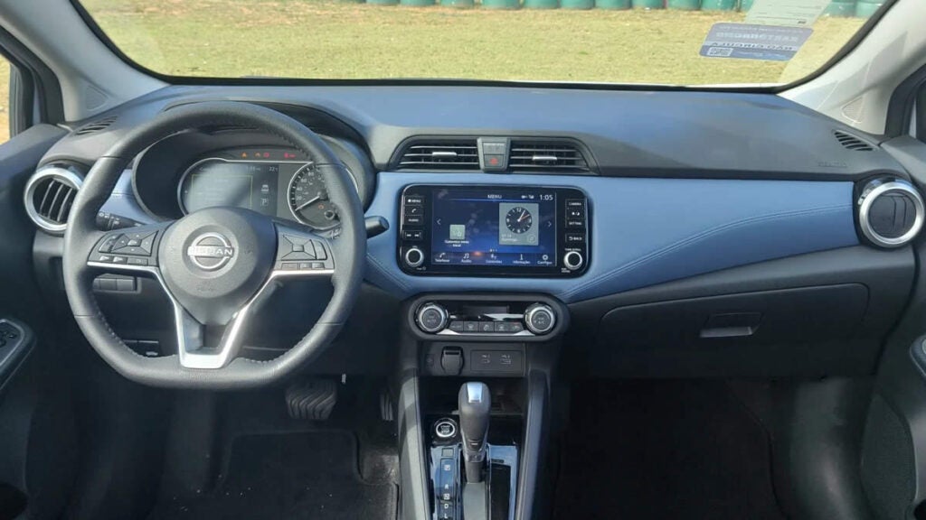 Durante o uso do modelo nas ruas da cidade, o novo Versa mostrou-se eficiente em diferentes situações do cotidiano, como engarrafamentos, manobras em vagas apertadas e deslocamentos em vias rápidas. A versão testada foi a Exclusive 1.6 CVT, topo de linha da gama, equipada com o consagrado motor 1.6 flex de 113 cv, aliado ao câmbio automático Xtronic CVT, que oferece trocas suaves e prioriza a economia de combustível no Versa 2026.