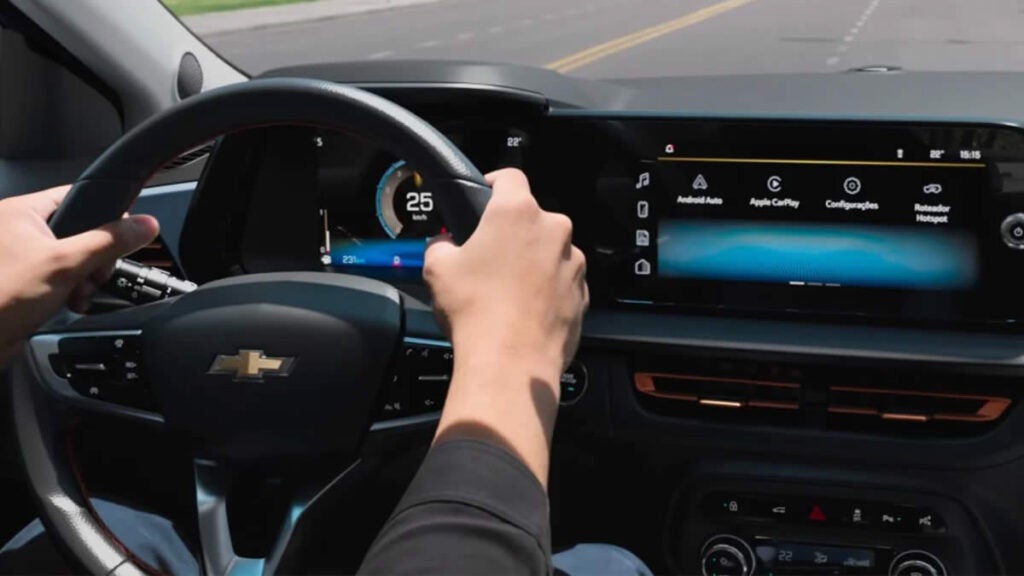 O interior do novo Onix Plus destaca-se pelo cockpit virtual, que une um painel digital de 8” à central multimídia MyLink de 11”. A interface agora é similar à usada nos modelos Tracker e Spin. A marca ainda aprimorou o sistema de ar-condicionado com inteligência artificial, enquanto todos os modelos passam a contar com Wi-Fi nativo, chave presencial, seis airbags de série, além de conectividade com Android Auto e Apple CarPlay sem fio.