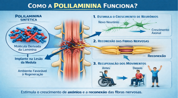 Brasil 11 de março de 2026, Polilaminina é uma molécula sintética desenvolvida por pesquisadores da Universidade Federal do Rio de Janeiro (UFRJ) e investigada como possível terapia para estimular a regeneração de neurônios após lesões na medula espinhal. A substância ganhou grande repercussão nas redes sociais e na mídia entre 2025 e 2026, com promessas de que poderia ajudar na recuperação de pacientes com paraplegia ou tetraplegia.