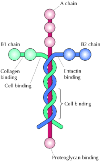 A laminina faz parte da chamada matriz extracelular, estrutura que ajuda a sustentar células e tecidos e participa da formação e organização de neurônios no sistema nervoso.