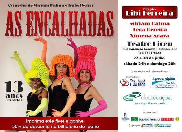 Dias 27 e 28 de Julho estamos produzindo o espetáculo ” As Encalhadas” no teatro Liceu em Campinas, e gostaríamos de contar com sua divulgação.