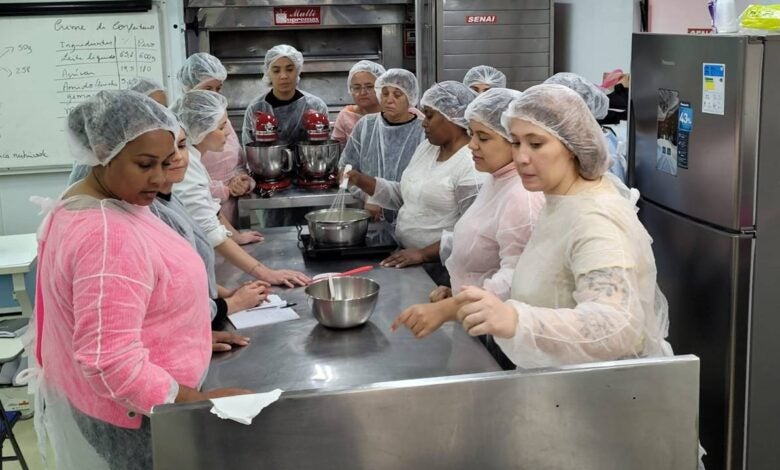 As aulas acontecem na Escola Móvel de Panificação e Confeitaria do Senai, uma carreta equipada que está estacionada no jardim da Unidade Cultural Arlindo Zadi, no Jardim Amanda.
