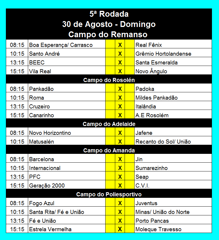A rodada esta recheada de bons jogos espalhados por todos os cantos da cidade. No Rosolem se enfrentam Roma F.C e Mildes Pankadão ambas buscam a vitoria para busca uma classificação. A tarde o Canarinho e Rosolem se enfrentam para sair da zona do rebaixamento.