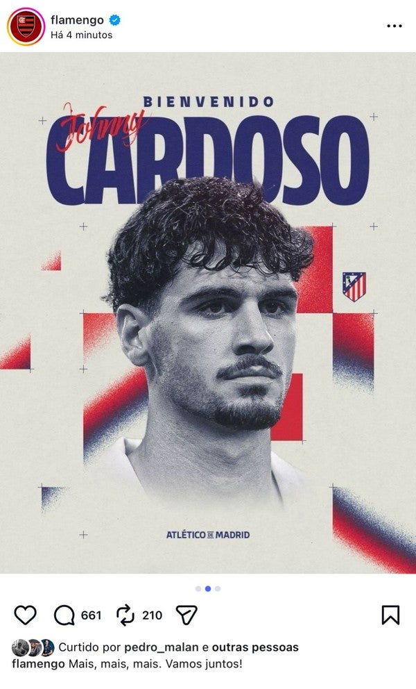 No anúncio do Flamengo pela renovação do treinador Filipe Luis, Jhonny Cardoso, do Atlético de Madrid, foi publicado junto. Todavia, não houve nenhuma negociação, foi apenas um erro interno.
