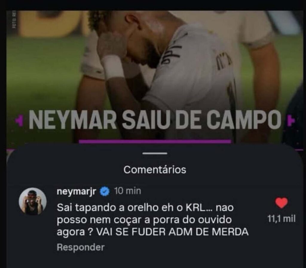 Uma publicação do canal TNT Sports escreveu que o jogador poderia estar tapando os ouvidos por conta das críticas. Neymar, se irritou com o fato e comentou: “Sai tapando a orelha é o car*****… Não posso nem coçar a **** do ouvido agora? Vai se ***** administrador de *****”. Logo após, a publicação foi apagada.