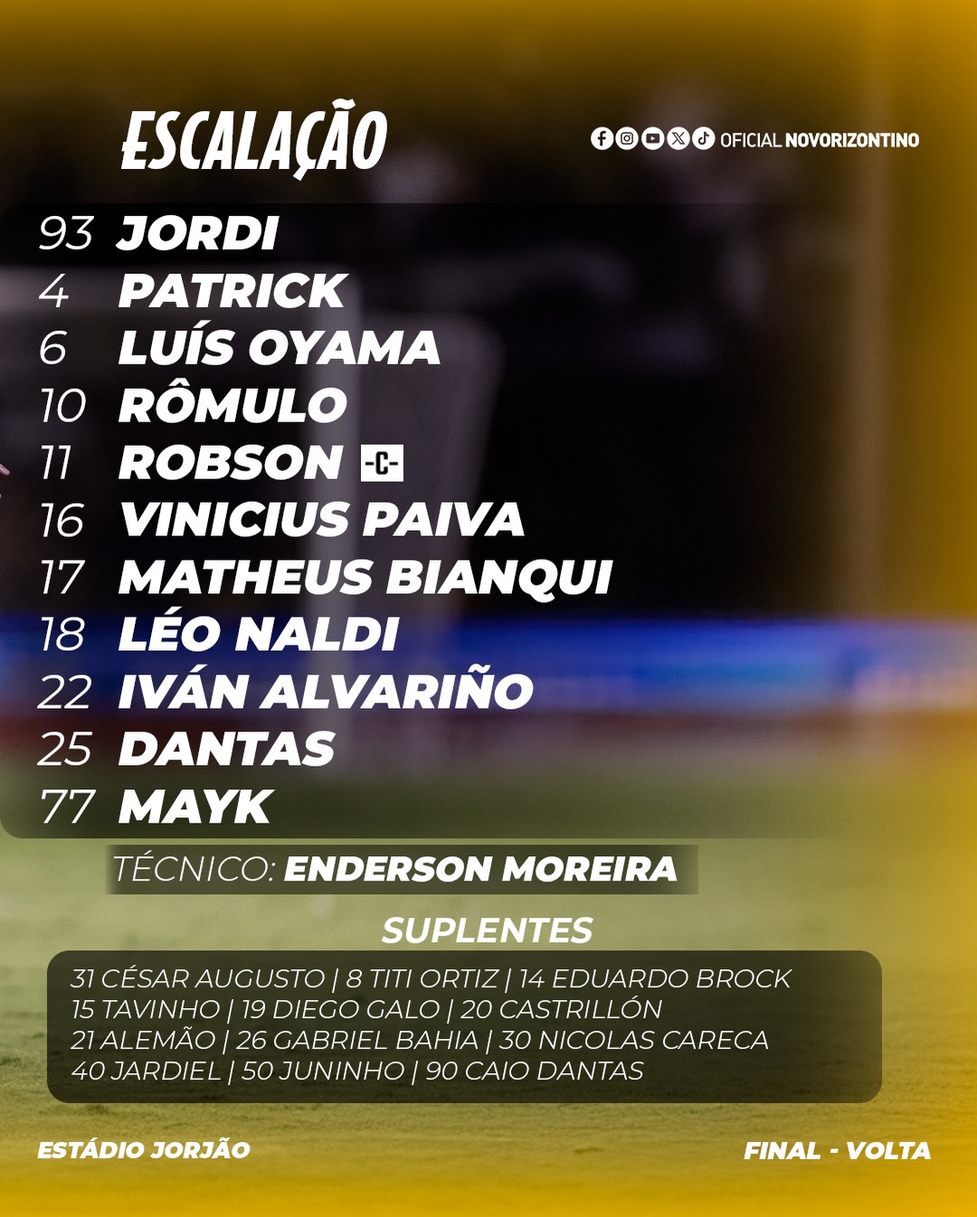 O Novorizontino está escalado para a partida de volta da sua primeira final de estadual na história. O time de Enderson Moreira vai a campo com seu melhor jogador: Rômulo.