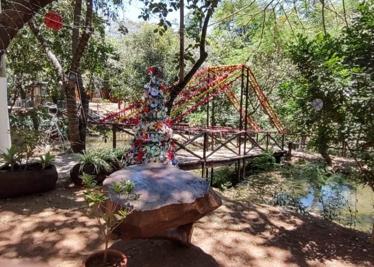 A reutilização de recicláveis também foi aplicada na Casa de Bambu, que fica na área central do parque. O espaço teve as paredes refeitas com pallets, que foram doados por empresas da cidade.