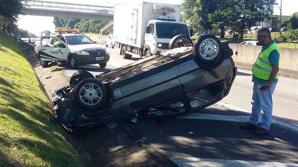 O carro, um Fiat Uno ficou de ponta-cabeça e o motorista, com ferimentos leves, foi socorridos pelos para-médicos da rodovia.