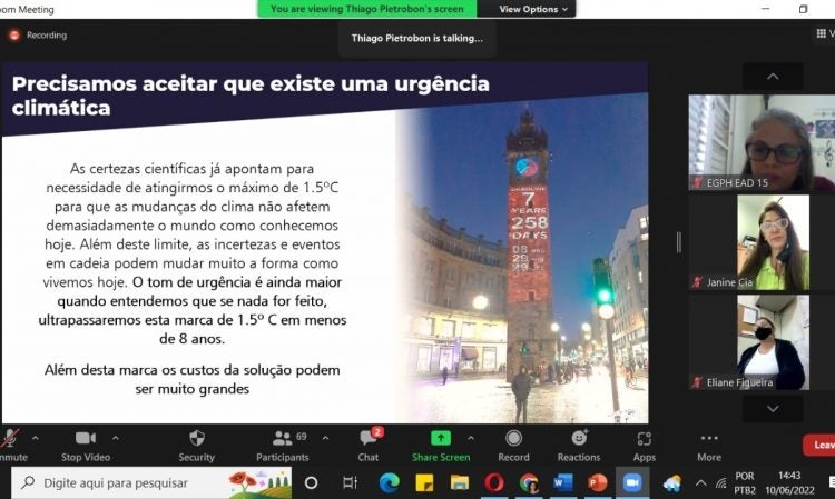 “Água e mudanças climáticas: o clima muda e nossas vidas também”. Eis o tema deste ano a ser desenvolvido no âmbito do Projeto Gota D’Água, promovido pelo Consórcio PCJ (Consórcio Intermunicipal das Bacias dos Rios Piracicaba, Capivari e Jundiaí), em parceria com a Prefeitura de Hortolândia, por meio da Secretaria de Educação, Ciência e Tecnologia. Na tarde desta sexta-feira (10/06), cerca de 70 assistentes de direção e coordenadores pedagógicos participaram da formação de abertura das atividades do projeto em 2022. A formação, com foco no aquecimento global e nos impactos que este exerce na mudança climática do planeta, foi realizada de maneira remota e online, via plataforma Zoom.