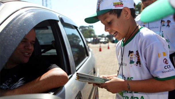 Acompanhados pelos responsáveis da unidade escolar, os alunos entregarão aos motoristas que passarem pelo local um cartão-semente e um saquinho de lixo para carros. A ação faz parte do programa Estrada para a Cidadania, promovido pelo grupo CCR AutoBAn (Concessionária do Sistema Anhanguera-Bandeirantes), em parceria com a Prefeitura de Hortolândia, por meio da Secretaria de Educação.