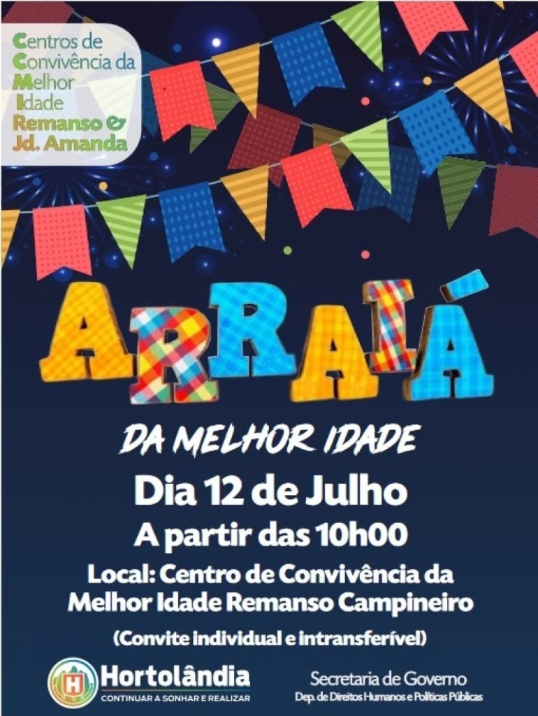 Tradicional festa julina é retomada após dois anos, por conta da pandemia da Covid-19O Centro de Convivência da Melhor Idade (CCMI) do Remanso Campineiro abre as portas, nesta terça-feira (12/07), a partir das 10 horas, para o seu tradicional Arraiá da Melhor Idade de Hortolândia.