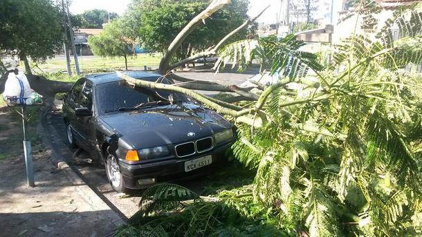 Uma árvore caiu em cima de um carro no bairro Jd. Malta, em Hortolândia, e ficou atravessada na rua, impedindo a passagem de automóves. Com a chuva forte deste domingo(28/12) a árvore não resistiu e partiu ao meio.
