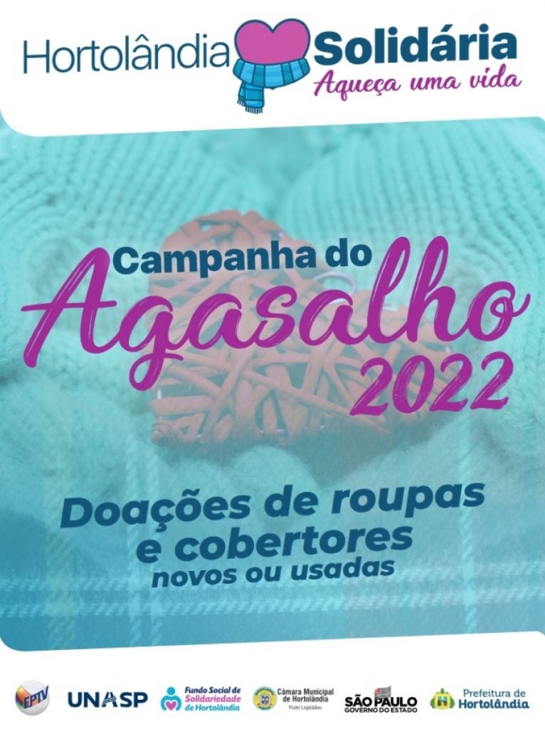 Fundo Social de Solidariedade disponibilizará caixas coletoras e ao realizar a doação, é importante certificar-se de que as peças estão em boas condições e limpasPara aumentar a arrecadação de roupas e cobertores à população em vulnerabilidade social, o Fundo Social de Solidariedade lança, no dia 19 de maio, aniversário de 31 anos de Hortolândia, a Campanha do Agasalho 2022.