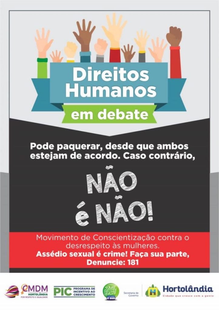 A primeira ação – a Blitz do “Não é Não” — será nesta quinta-feira (21/11), às 17h, no cruzamento da loja Casas Bahia, na Região Central, quando haverá distribuição de informativos sobre o assunto. No dia 29 deste mês, às 14h, haverá palestra no Centro de Formação dos Profissionais em Educação “Paulo Freire, no Remanso Campineiro, sobre a “Terapia do Riso”. O tema será abordado pela professora e escritora Ivone Ingelmann, pós-graduada em PNL (Programação Neuro Linguística). Já no dia seis de dezembro, às 17h, também no centro de Hortolândia, será feita a campanha do “Laço Branco”, quando homens procurarão sensibilizar outros homens sobre o tema e entregarão laços na cor da campanha.