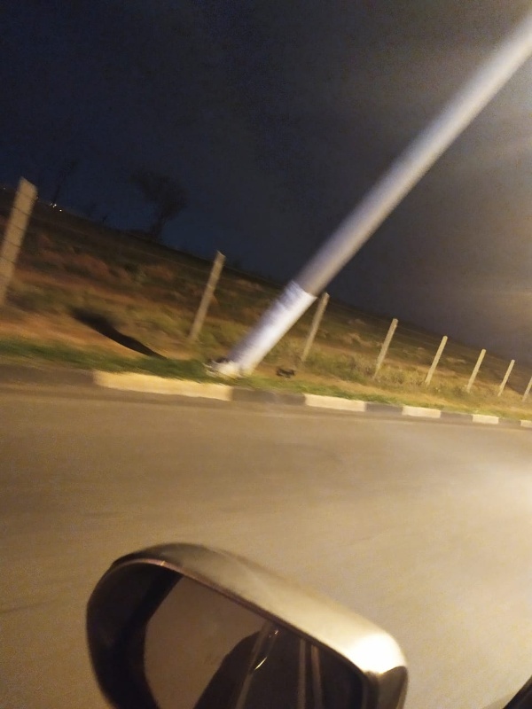 A estrutura do poste ficou comprometida, sustentada pelos fios.
