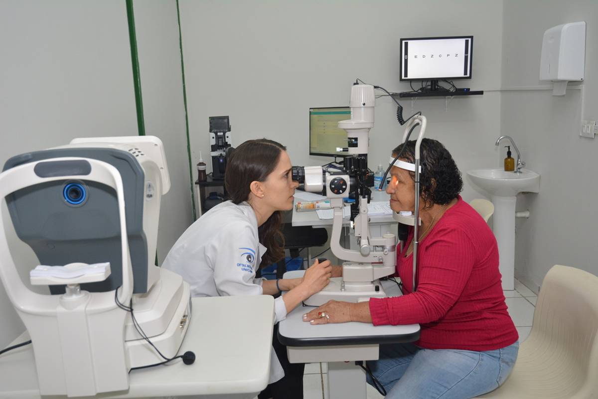 Entre os equipamentos de destaque está o projetor digital, utilizado para avaliar a acuidade visual por meio da exibição de letras e imagens em um monitor. A tecnologia permite a realização de exames em crianças não alfabetizadas e idosos com maior precisão e conforto. A sala também foi equipada com refrator de Greens, que mede com exatidão miopia, hipermetropia, astigmatismo e presbiopia, auxiliando o médico na prescrição das lentes corretivas adequadas.