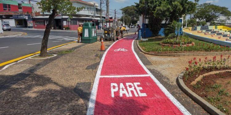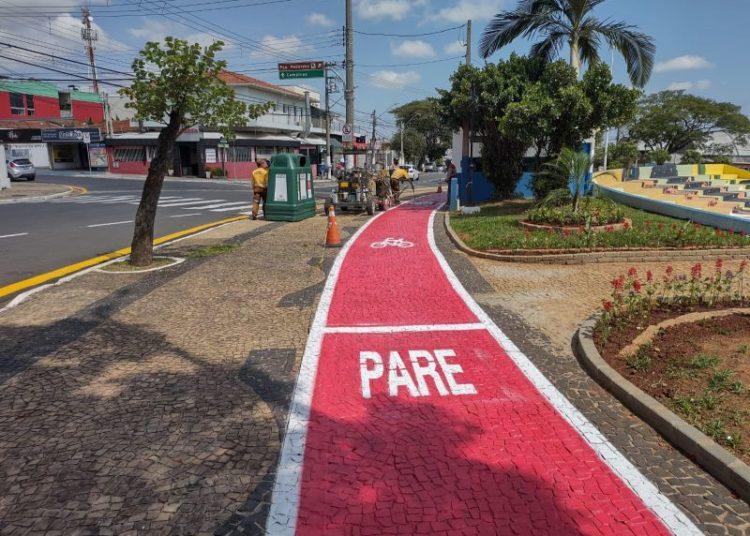 Mais uma etapa da implantação de ciclovias e ciclofaixas, realizada pela Prefeitura de Hortolândia, em diferentes regiões da cidade, foi iniciada. Nesta sexta-feira (03/12), o trabalho foi realizado na praça A Poderosa, umas das principais área de lazer da cidade, no Jardim Rosolem. A ação faz parte do processo de revitalização de toda a área. De acordo com a Secretaria de Mobilidade Urbana, no total, são 500 metros de ciclofaixa implantada no entorno da praça.