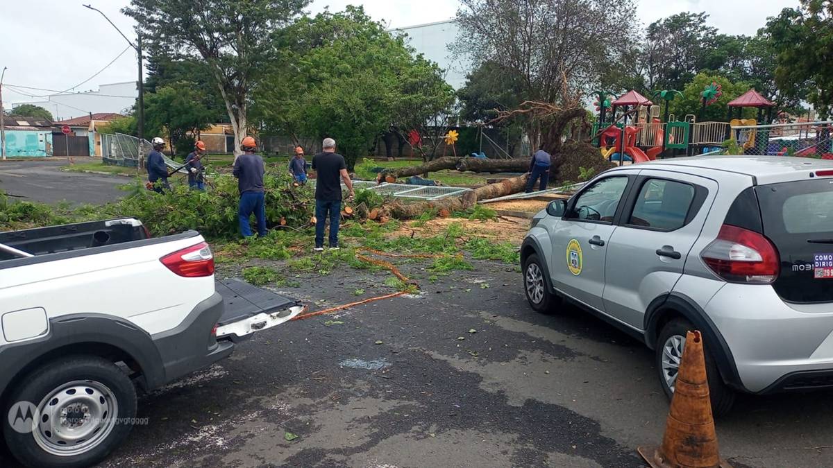 A Secretaria de Educação suspendeu as aulas na Emeief Jardim São Pedro nesta segunda-feira, com retorno previsto para terça-feira (25/11). As árvores caídas já foram removidas e serão transformadas em adubo orgânico para futuros plantios urbanos.
