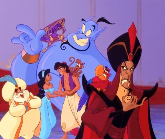 “Aladdin” foi uma das produções que marcou o renascimento da Walt Disney na década de 1990. O filme ganhou os Oscars de Melhor Canção Original (“A whole new world”) e Melhor Trilha Sonora. Na versão original, o falecido ator Robin Williams faz a voz do gênio da lâmpada.