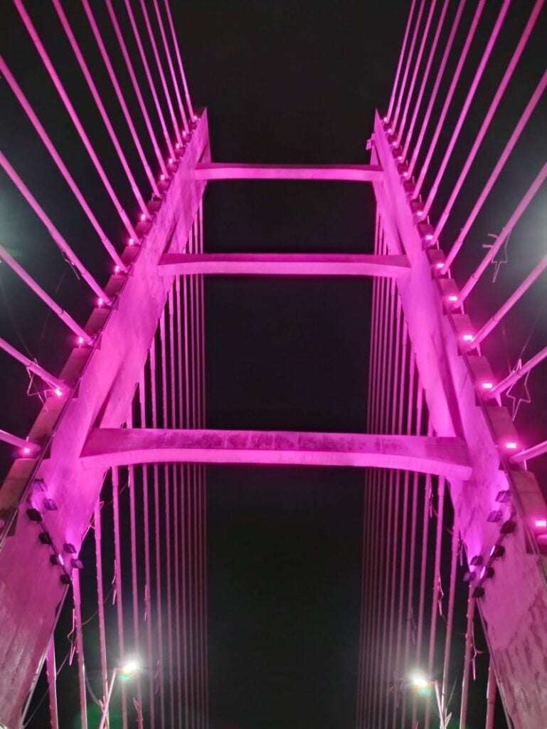 Outubro chegou! Para as mulheres é uma época importante para cuidar da saúde e se prevenir contra o Câncer de Mama. Por isso, a Prefeitura de Hortolândia promove a campanha “Outubro Rosa” com ações e atividades de conscientização e prevenção à doença para o público feminino (confira abaixo a programação). Para marcar o início da campanha, a Secretaria de Planejamento Urbano e Desenvolvimento Estratégico acionou a iluminação especial na cor rosa na Ponte da Esperança (Ponte Estaiada) (foto), na noite desta segunda-feira (03/10). A nova iluminação substitui a cor amarela da campanha “Setembro Amarelo” de prevenção ao suicídio. Durante o ano, a Prefeitura aciona a iluminação decorativa especial na ponte para conscientizar a população sobre datas e campanhas importantes em âmbitos nacional e internacional.