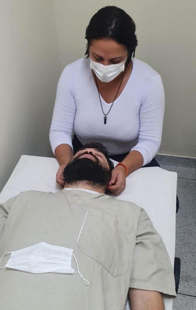 A programação oferece atividades de relaxamento para as equipes de linha de frente e dos demais setores do hospital que têm trabalhado desde o início da pandemia sob pressão intensa. Nesta semana, os profissionais tiveram terapia de Barras de Access (foto), que visa eliminar atitudes e pensamentos negativos que possam afetar a saúde mental e física. A atividade foi ministrada pela terapeuta convidada Priscila Aguiar.