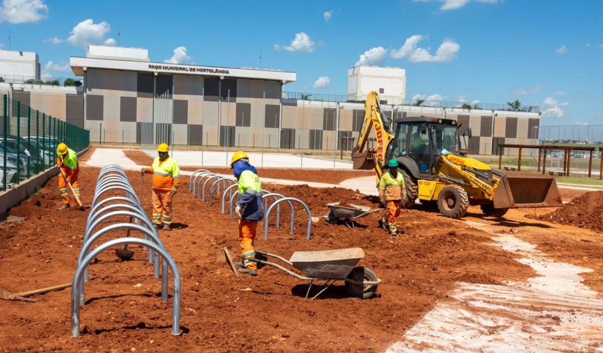 A Praça Esportiva do Paço Municipal Palácio dos Migrantes, em Hortolândia, segue ganhando forma e já apresenta avanços significativos em sua estrutura. As quadras de areia e o campo de futebol society estão em estágio avançado, enquanto o espaço recebeu a instalação de bicicletário e calçadas concretadas.