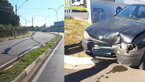 Um motorista colidiu contra um poste após perder o controle do veículo na manhã desta terça-feira(06), no bairro Jardim São Camilo, em Hortolândia(SP), próximo a antiga Mabe.