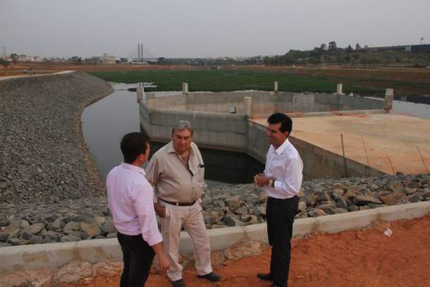 O prefeito Antonio Meira e o secretário de Obras, Ronaldo Alves dos Reis, visitaram, nesta quinta-feira (26/10), as obras do reservatório Jac-2, em andamento na região do Jardim Minda e Carmem Cristina. Durante a vistoria, Meira solicitou que dois trechos de ruas na região sejam prolongados, com a abertura de um novo sistema viário para facilitar o acesso ao parque, que ficará no entorno do reservatório. A obra de implantação das ruas deve iniciar nas próximas semanas.