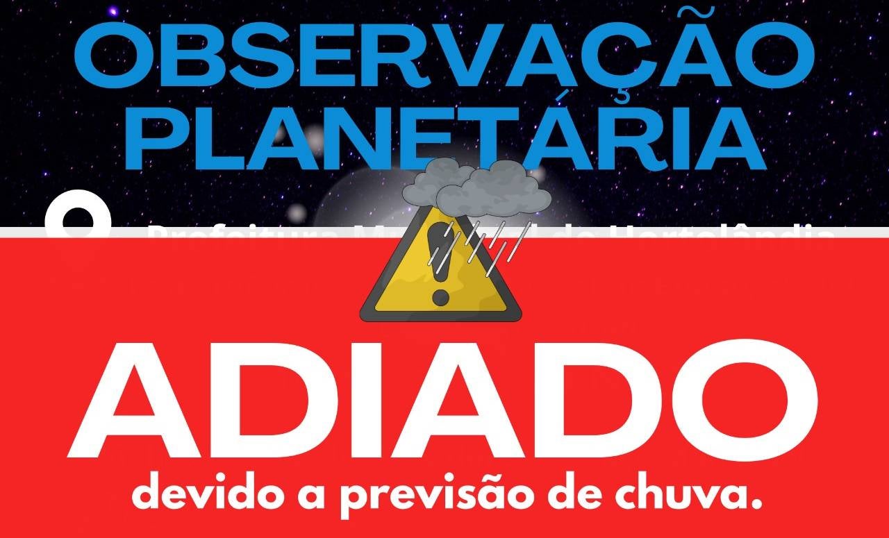 A Prefeitura de Hortolândia decidiu adiar a atividade de Observação Planetária que estava programada para esta quinta-feira (30/10) no Terraço da Ala Norte do Paço Municipal, no Jardim Metropolitan.