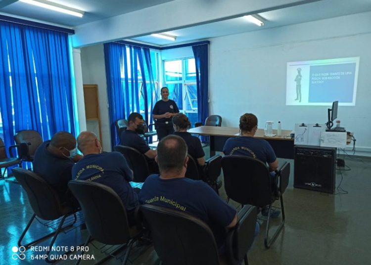 Estresse, ansiedade, o atuar constante em situações de perigo e violência. Estes e outros fatores de risco podem afetar a saúde mental do profissional de segurança pública. Para capacitar os integrantes da GM (Guarda Municipal) de Hortolândia a lidar com eles, a Prefeitura, em parceria com a GM de Nova Odessa, promoveu, nesta sexta-feira (26/11), palestra sobre o tema, dentro do curso de “Estágio de requalificação profissional 2021”. Ao longo da semana, a formação abordou temas de grande importância profissional e pessoal, dentre eles violência contra a mulher; diversidade social; primeiros socorros; enfrentamento às violências, com protocolos e fluxos de atendimento; e conflito socioambiental envolvendo animais.