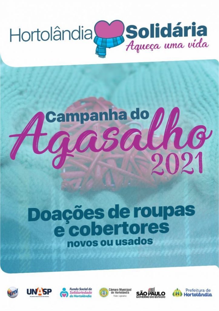 A Campanha do Agasalho segue até o dia 22 de setembro. Promovida pelo FUSSP (Fundo Social de São Paulo) e abraçada pelo Funsol-Hortolândia, a Campanha do Agasalho 2021 tem como tema “Inverno Solidário”. O objetivo é arrecadar cobertores e agasalhos novos e usados, em bom estado, para doar a pessoas em vulnerabilidade social.