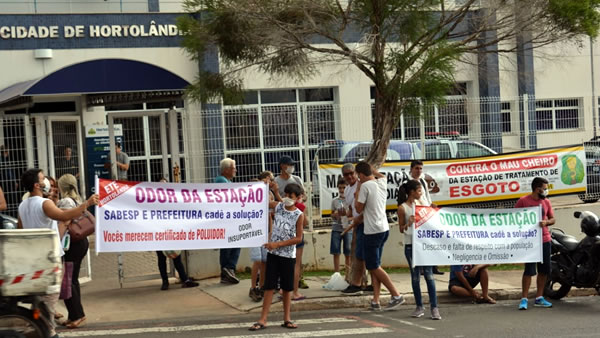 Um grupo de manifestante foi até a prefeitura na tarde da terça-feira(29) cobrar medidas contra o mal cheiro.