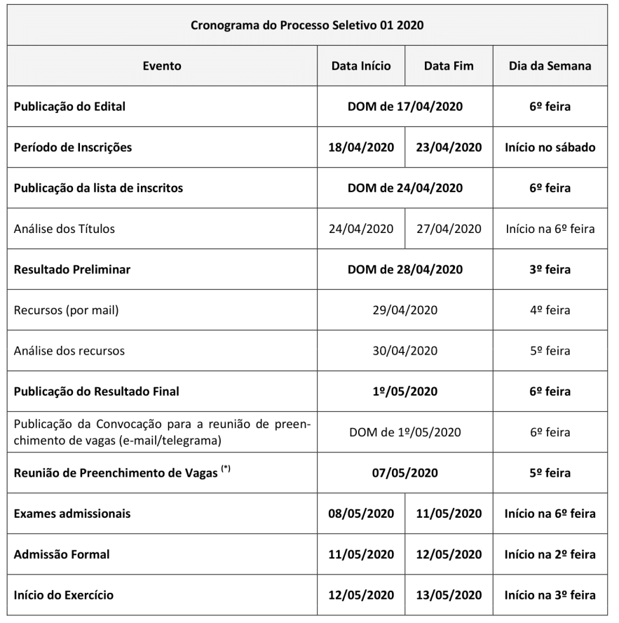As inscrições vão do dia 18/04/2020 ate 23/04/2020