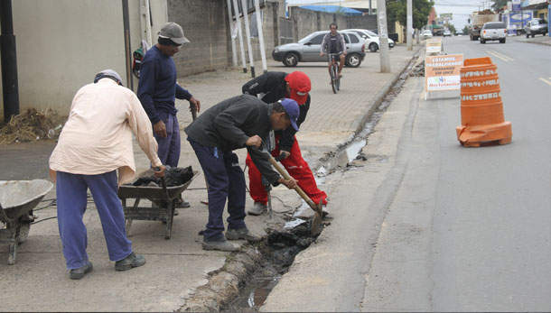 Trabalho, executado por servidores municipais, evita danos ao asfalto devido ao escoamento de água servida