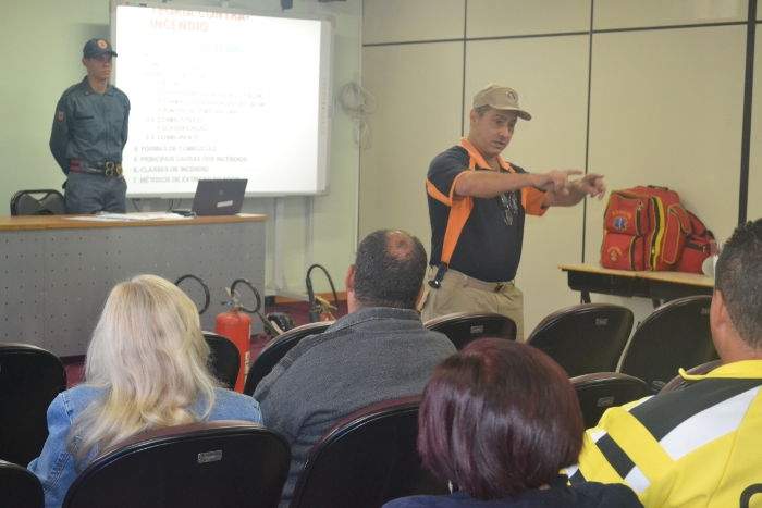 Outra prática orientada é a identificação dos tipos de extintores e como utilizá-los no combate a incêndios. Nesta etapa, os profissionais receberão informações sobre a utilização dos equipamentos.