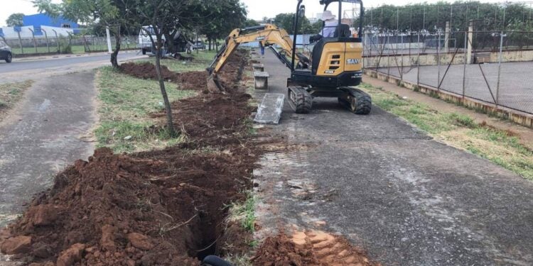 O processo de implantação começou com a escavação do solo, utilizando uma máquina escavadeira, conforme orientações do Departamento de Iluminação Pública da Secretaria de Obras. O trabalho é necessário para a instalação do cabeamento elétrico subterrâneo, que permitirá a ligação das luminárias LED de maneira eficiente e segura. A obra é parte do compromisso da Prefeitura com a modernização da infraestrutura urbana.