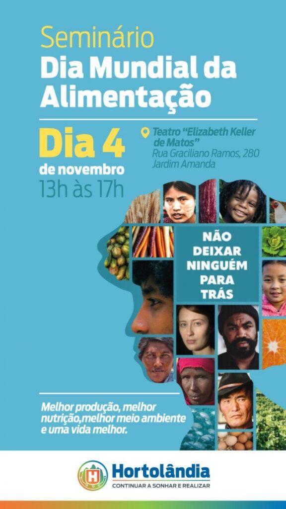 A Prefeitura de Hortolândia, com o apoio do COMSEA (Conselho Municipal de Segurança Alimentar de Hortolândia), promove, nesta sexta-feira (04/11), a partir das 13h, seminário em comemoração ao Dia Mundial da Alimentação. O evento, gratuito e aberto ao público, será no Teatro Elizabeth Keller de Matos, na Rua Graciliano Ramos, 280, no Jardim Amanda I.