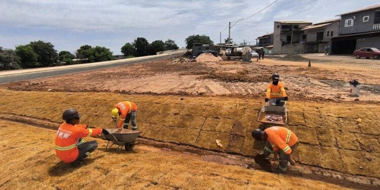A construção do viaduto no Jardim Nova Europa, em Hortolândia, avança para a etapa final. Nesta semana, a empresa responsável pela obra concluiu a implantação da rede de drenagem pluvial sob a rotatória e ruas do entorno e deu início ao serviço de paisagismo no local.