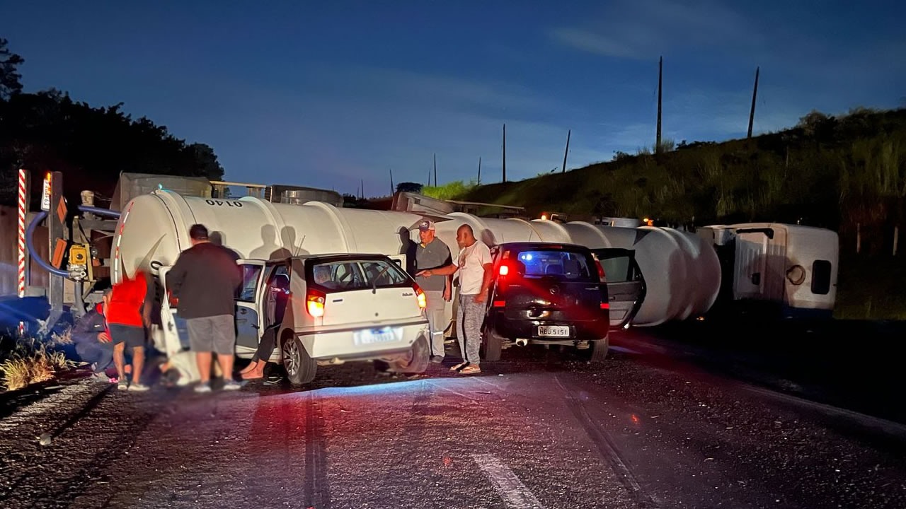 De acordo com a Polícia Rodoviária, o acidente na SP-101 teve início quando a carreta perdeu o controle e tombou na pista, derramando parte da carga de água. Dois veículos que trafegavam logo atrás não conseguiram parar a tempo e colidiram com o caminhão atravessado.