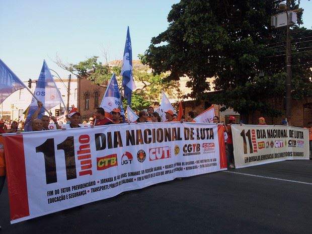 Representantes de vários sindicatos de Campinas e região iniciaram uma passeata pelas ruas centrais da cidade por volta das 10h. O trânsito ficou lento em ruas como a José Paulino e pista interna da Moraes Sales.