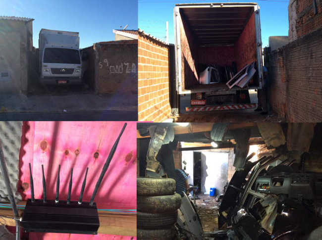 No local havia uma sala específica para o desmanche de veículos, com muitas ferramentas, proteção acústica para não chamar atenção dos vizinhos e equipamento eletrônico utilizado para inibir sinal de rastreadores e celulares.