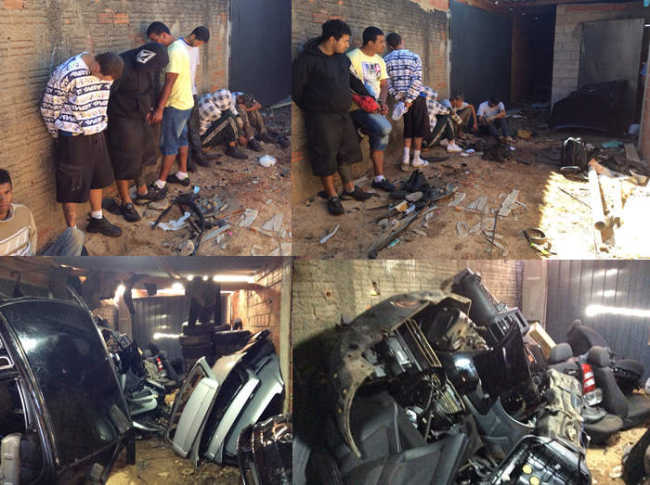 Por volta das 7h30, os policiais foram até o desmanche, onde realizaram um cerco e conseguir deter o grupo. Na hora do flagrante, sete homens estavam desmontando um Fiat Strada furtado.